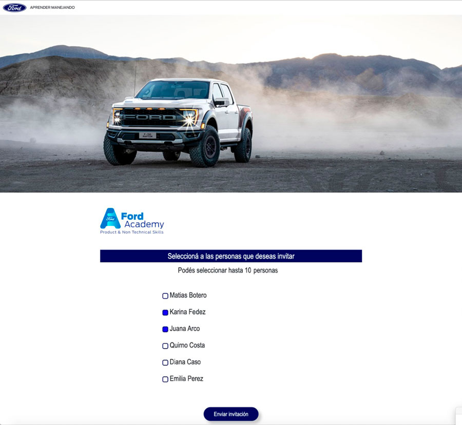 Programación de sitio web con base de datos para que los representantes puedan seleccionar a qué empleados desean registrar y enviarle invitación.
