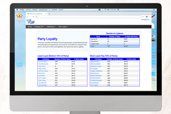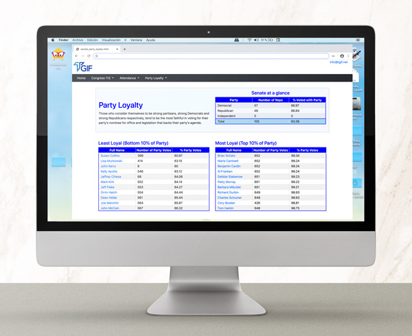 Página web TGIF que representa datos del congreso de EEUU desde ProPublica Congress API. Se crearon