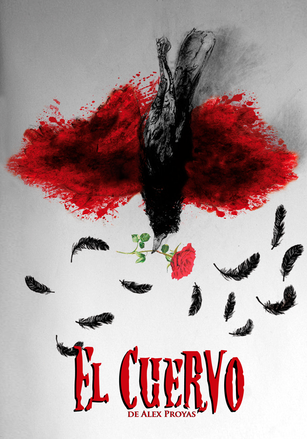 Poster publicitario reversionado, en el cual se construye un discurso visual no redundante, una mirada particular sobre la película “El cuervo”