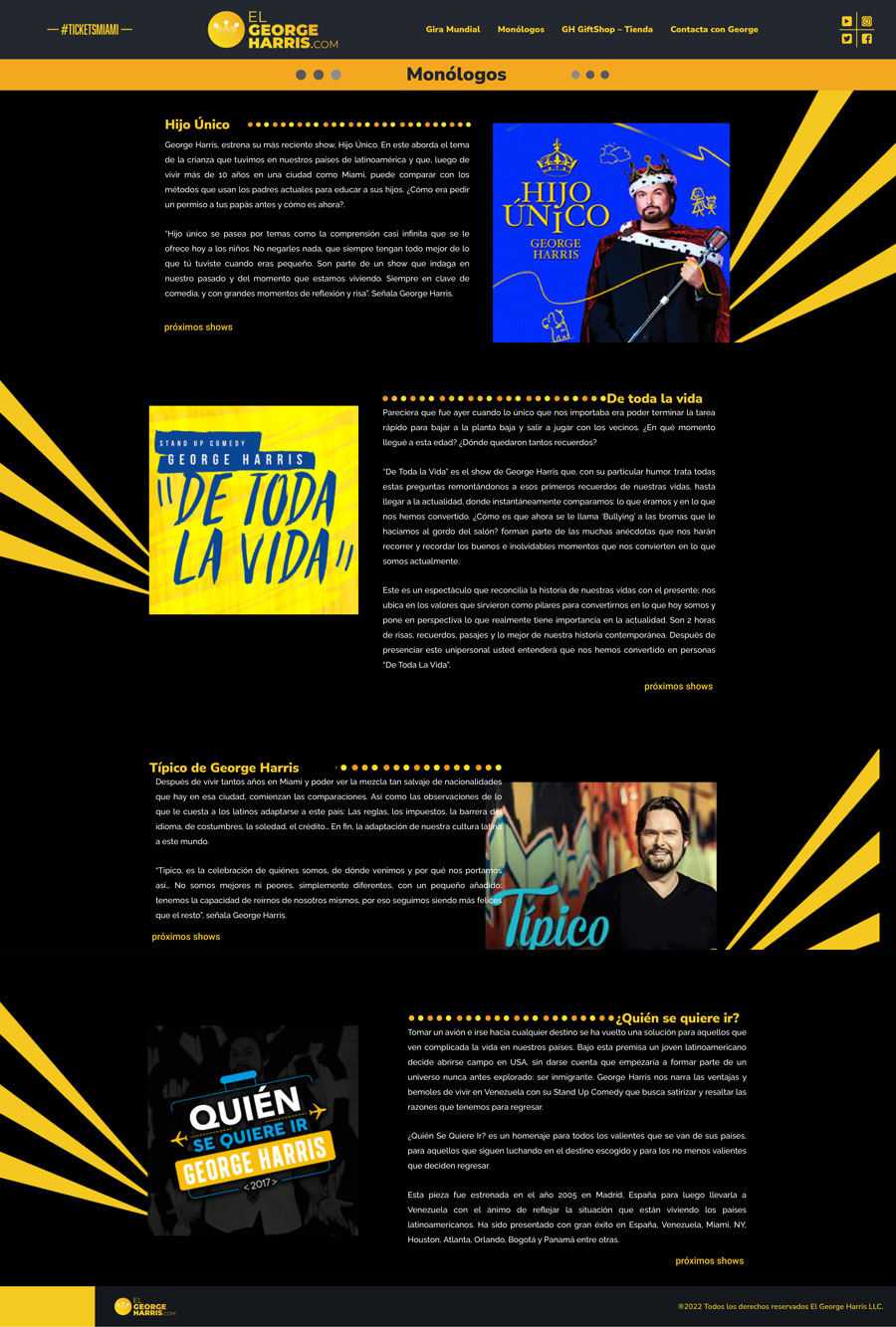 Actualización y rediseño de sitio web de comediante venezolano George Harris.