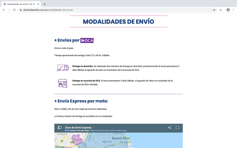 Diseño, desarrollo e implementación de web responsive con tienda virtual. www.alytiendaonline.com.ar