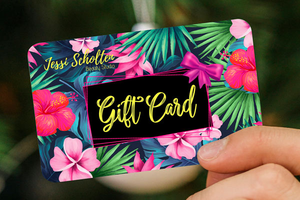 Diseño de tarjeta de regalo para Beauty Studio Jessi Scholten.